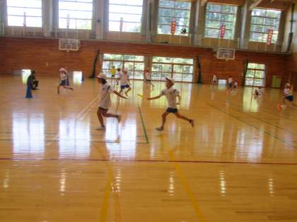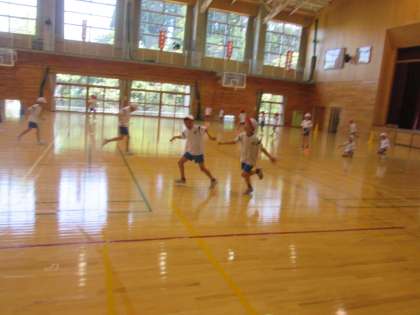 体育の時間では、運動会に向けてリレーのバトンパスの練習に取り組んでいます。助走をしながらバトンを左手でもらって右手で渡すことを目指してがんばっています。