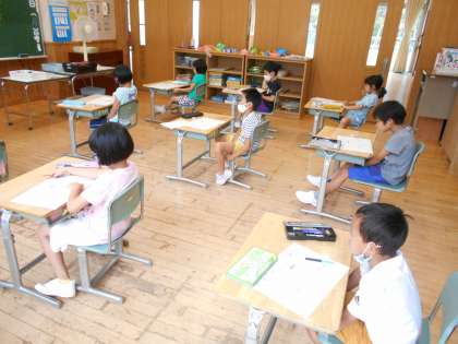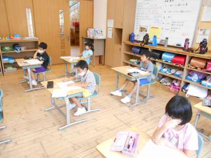2年生は書写の学習で、ひらがなやカタカナの形に気を付けて書く学習に取り組みました。姿勢にも気を付けて、集中してプリントに書き込んでいました。