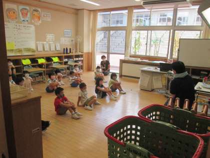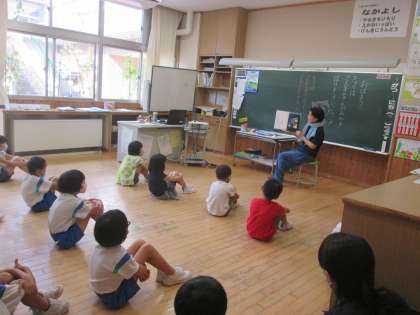 今日の朝活動は読書タイムです。1,2年生は、読書ボランティアの向山さんによる読み聞かせをしていただきました。3年生は一人一人静かに読書しました。