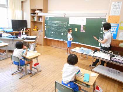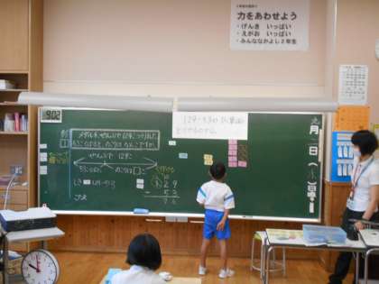 2年生は、算数科で繰り下がりがある引き算の学習に取り組みました。となりの位からかりてきた数を利用して引き算をすることを説明しました。