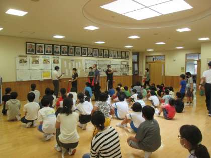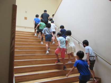 土砂災害の発生を想定し、小中合同で避難訓練を行いました。大雨による山田川の増水や土砂災害の危険性からできるだけ離れるために、2階へ避難しました。