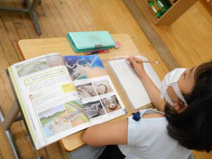 5年生は、理科で「流れる水のはたらき」について学習をしています。今日は、大雨が降ったときに土石流が起きる様子を動画から学びました。