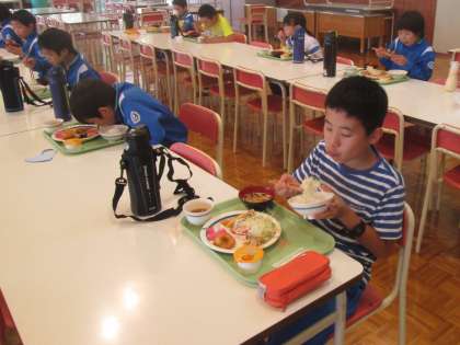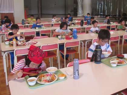 昼食は、館内の食堂で食べました。体をたくさん使って活動した後の食事は、みんな食欲があってもりもり食べ、何度もおかわりできました。