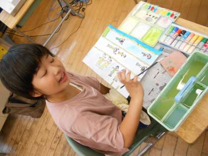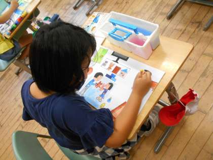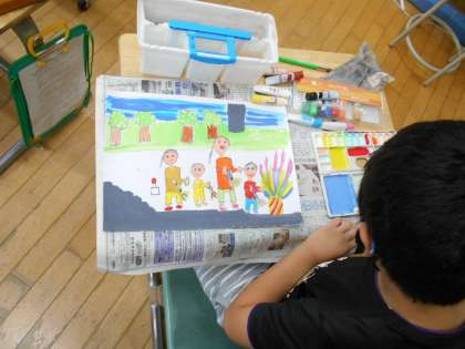3年生は、身近な生活の中で楽しかった思い出を描きました。様子がよく伝わるように表現しました。