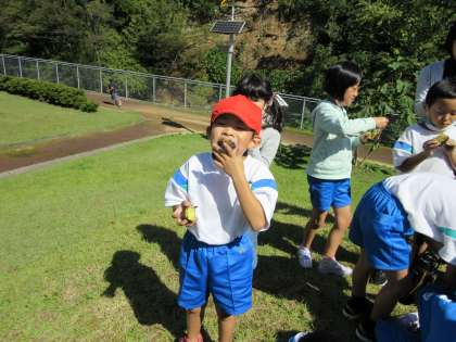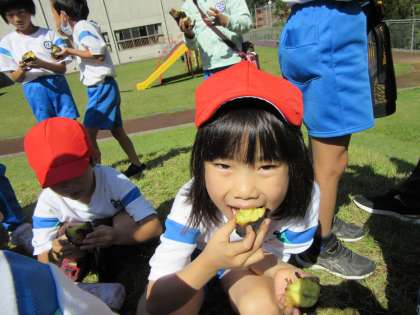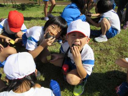 ほくほくで、とっても甘い焼き芋を、芝生広場でいただきました。