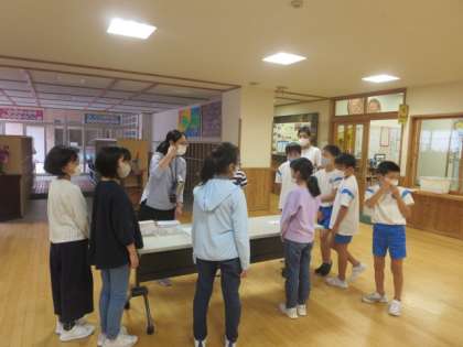 6日の就学時健康診断に向けて、5年生が、新入生のお世話の仕方について、保健の先生から指導を受けました。