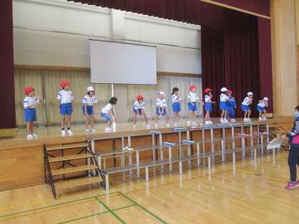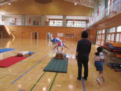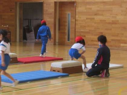 その後、跳び箱を跳ぶ練習をしました。両足で踏み切ることや手で体を支えること等を分けて練習しました。どの子も跳び箱が上達してきました。