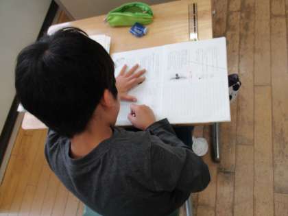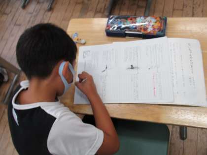 国語科の学習で「ちいちゃんのかげおくり」を読んでいます。1人で場面を比べながら読み、感じたことを学習プリントにどんどん書き込みました。