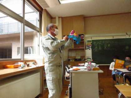 お点前を行った後、用務員の先生がお礼に手品を披露してくださいました。上手な手品に驚き、先生方と楽しい時間を過ごすことができました。