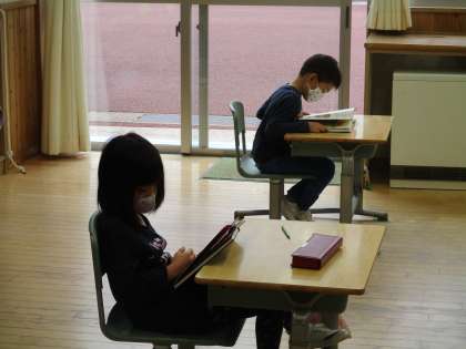 1週間の始まりは、静かな読書タイムから始まります。どの学年も黙々と読んでいます。