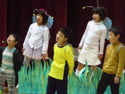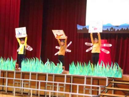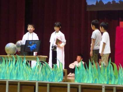 3、4年生は、日頃の理科の学習を発表しました。大きな声で演技したり、伸びやかな声で歌ったりして、会場から大きな拍手が送られていました。