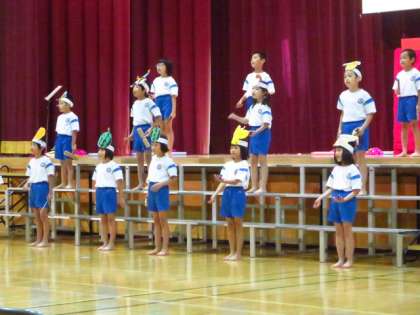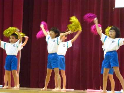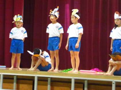 1、2年生は、歌とダンス、器楽合奏を発表しました。練習の成果を発揮して、どの子も元気いっぱいの演技ができました。