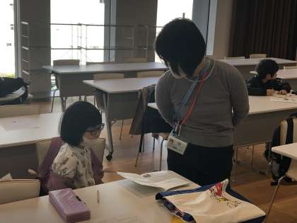 富山市立図書館で、振り返りを行いました。どの子も、便利な図書館の工夫を見つけることができました。
