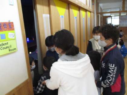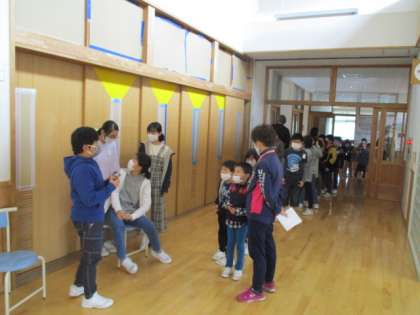 6日、図画工作科の学習でつくった「光の形」の作品展示会を開きました。たくさんの下級生や先生方が集まり、「ずっと見ていたいな」「幻想的な作品できれいだね」などの感想が聞かれました。