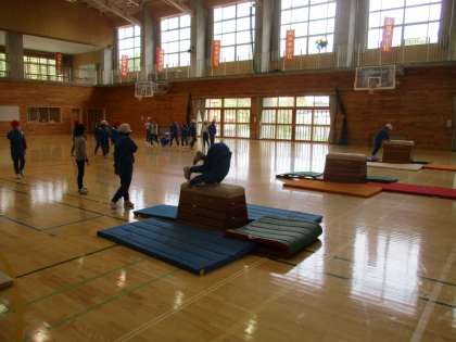 体育の時間に、跳び箱運動に取り組んでいます。台上前転が上手な友達の跳び方をよく見て、踏み切りの仕方や手の付き方、目線の向き等、それぞれの段階に分けて練習しました。