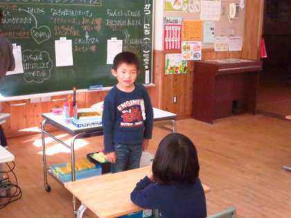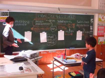 1年生の生活科の学習では、家の仕事に挑戦する活動を行っています。この日は、家の仕事を実践してみての感想を話し合いました。