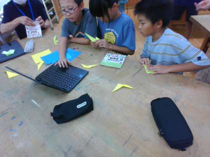 就学時健診に向けて、新1年生にプレゼントするブーメラン作っています。喜んでもらえるように丁寧に折っています。