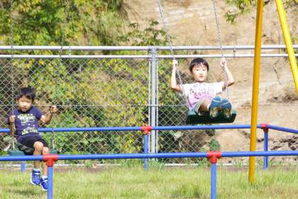 広場には心地よい風が吹いています。子供たちも気持ちよさそうに遊んでいます。