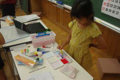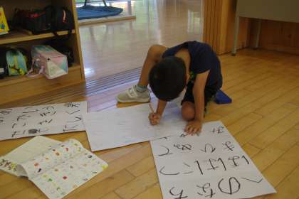 山田保育所の年長さんを迎える準備をしています。学校での生活を紹介しようと、いろいろ考えています。