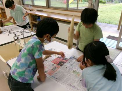 1学期から育てていたヘチマを収穫しました。感触やにおいをたしかめながら種を出して数えていました。
