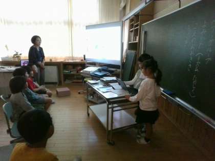音読上映会をしました。それぞれの班の発表動画を楽しみました。