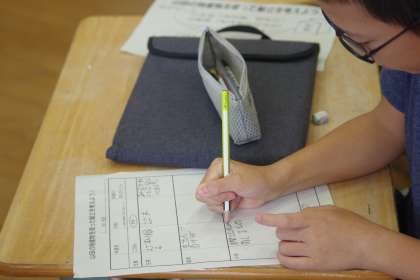 5年生が、学校給食山田の日に向けて献立を考えています。地域の特産品を生かしたメニューづくり。学校栄養職員の先生にも関わってもらいながら、よいものになるよう取り組んでいます。