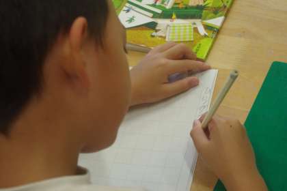 ひらがなをカタカナに直していました。久しぶりにカタカナを書くのでしょうか。しっかり書けたかな。