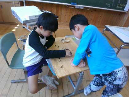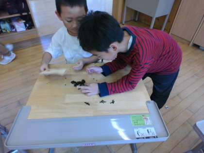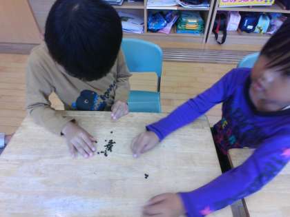 あさがおの種ができ、取れた数を数えています。算数の学習を活かしています。