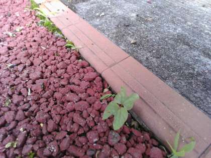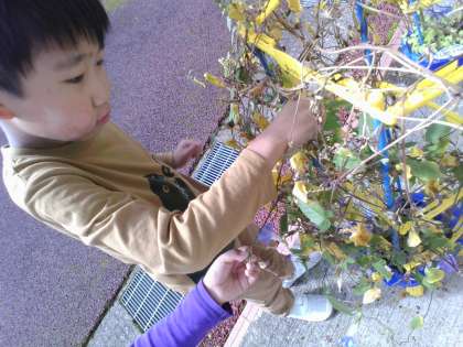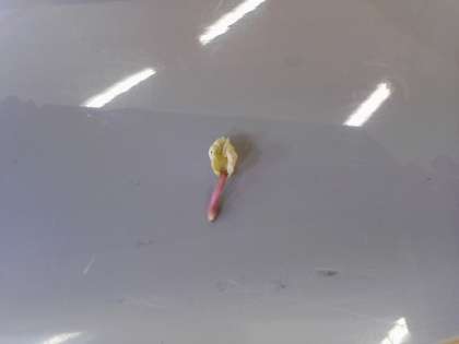 種を取りっています。落ちた種が、地面から芽を出しました。割れた種の中身が見えて大興奮です。