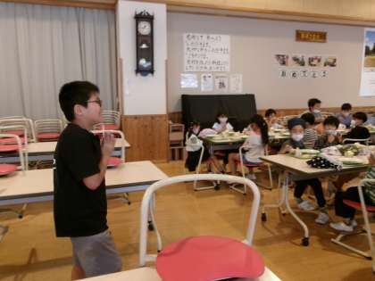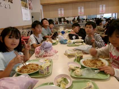 今日は、子供たちの好きなソフト麺、蒸しパンも人気のようです。今日も、座席を変え、いつもとは違う友達と給食を楽しんでいます。