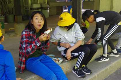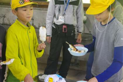 2日目の朝ご飯は、五平餅。おいしく焼き上がりました。この後も子供たちはいろいろな活動に取り組みました。詳しくは、学習参観日の発表を楽しみにしてください。