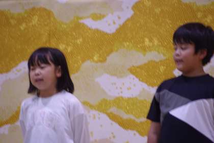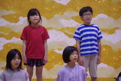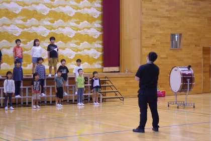 下学年の子供たちが体育館で歌と合奏の練習をしています。素敵な声が響いています。