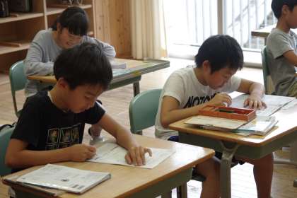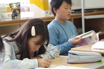 概数の学習に取り組んでいます。教科書の問題やドリル学習、プリント学習など、自分の学びに合わせた活動です。