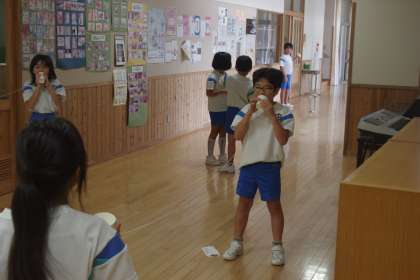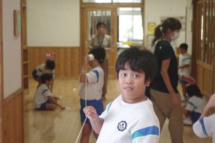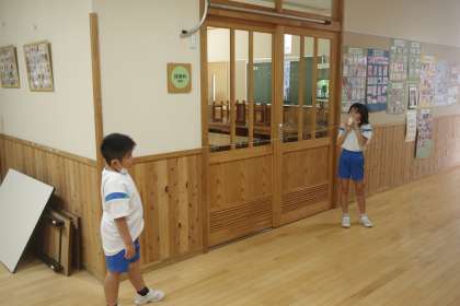 次は、糸電話で確かめます。糸が、ぴんと張っているときと、たるんでいるときの聞こえ方の違い。糸の真ん中を指でつまんだときの聞こえ方の違い。子供たちの好奇心が刺激されます。