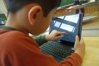 1年生が選択献立のメニューを選んでいました。フォームでの入力も、手際よく進めています。何を選ぶのかな。