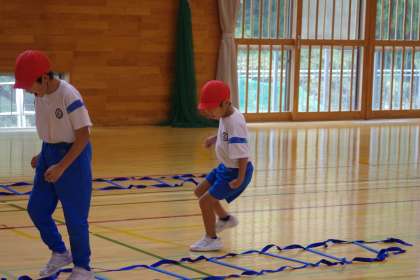 その後、軽く走って、ラダーに取り組みます。