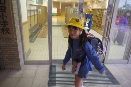 上学年の子供たちが帰って行きます。気を付けて帰りましょう。月曜日、元気に登校してくるのを待っていますね。