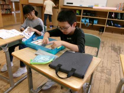 身の回りをきれいにするために、お道具箱の中身を必要な物と必要でないものに分けて整理・整頓をしました。使いやすいお道具箱になりました。