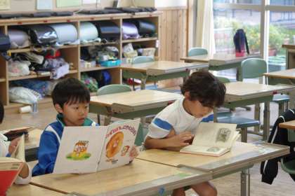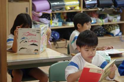 2年生は、自分の好きな本を読んでいます。落ち着いた時間です。
