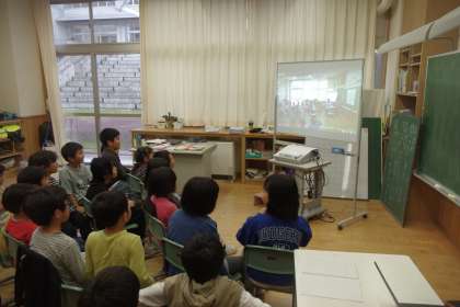 下学年の子供たちが、以前行った保育所さんとの交流会の振り返りをしていました。当日撮影した映像を振り返って、自分たちの活動や姿について確かめています。よかったところ、見直せばよいことを確かにしていました。次の活動につながりますね。