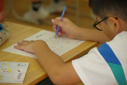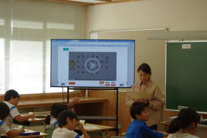 今日は、ALTの方の発音を聞いて、言われたアルファベットを線でつなぐ活動をしました。