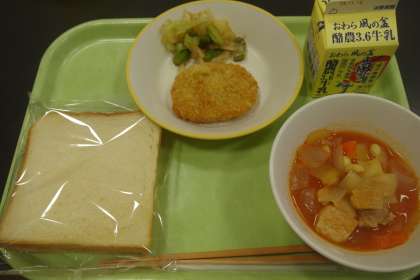 今日の献立の中に「かぼちゃコロッケ」がありました。子供たちは、口々に「ハロウィンだからかな」「ハロウィンメニューだね」と話していました。