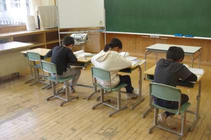 教科書の問題に取り組んでいます。これまで学習したことを確かめながら計算しています。