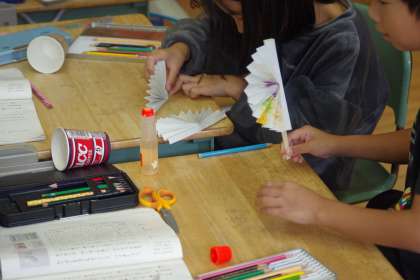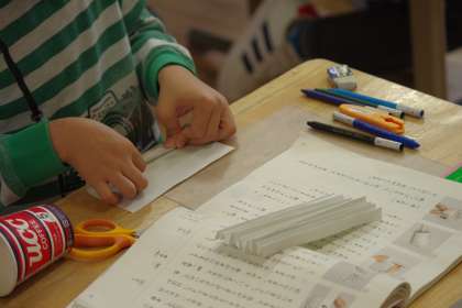 教科書の、「おもちゃづくり」の文章を読んで、その通りに作っていますが、なかなか上手くいきません。