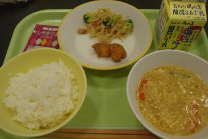今日の献立に出た「切干大根のペペロンチーノ」は、少し辛く感じる子供もいたようです。ただ、切干大根の食感と味わいがよくて、ご飯が進んでいました。
