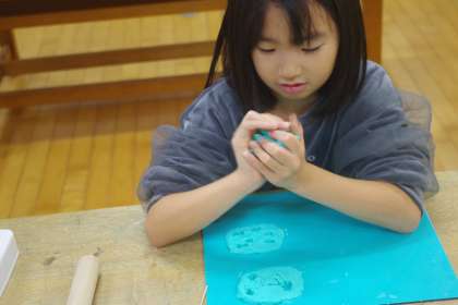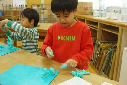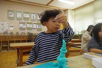 粘土を使った作品に取り組んでいます。中に支柱を入れたり、形を考えたり、一人一人の工夫がみられます。