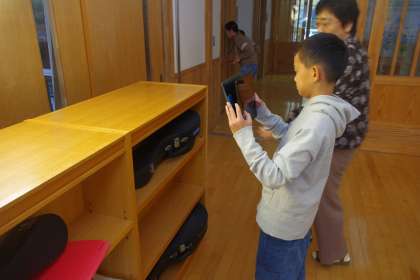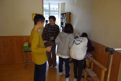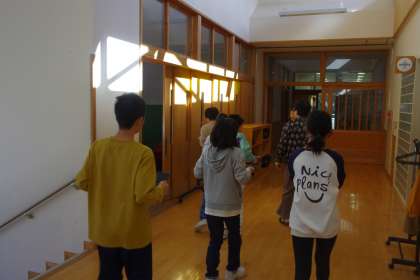 身近なところに「てこ」が使われているものがないかを探して、校舎内を歩いています。