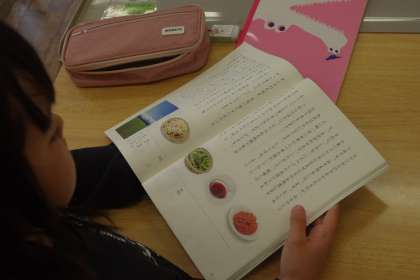 「すがたを変える大豆」の学習に取り組んでいます。段落を確かめています。