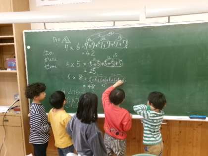かけ算の解き方をみんなで考えて、意見を出し合いました。