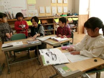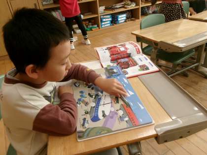 消防車やパトカー、戦車等のはたらく車について教科書や本で調べ、それぞれの車の仕組みについて分かったことを友達や先生に伝えました。